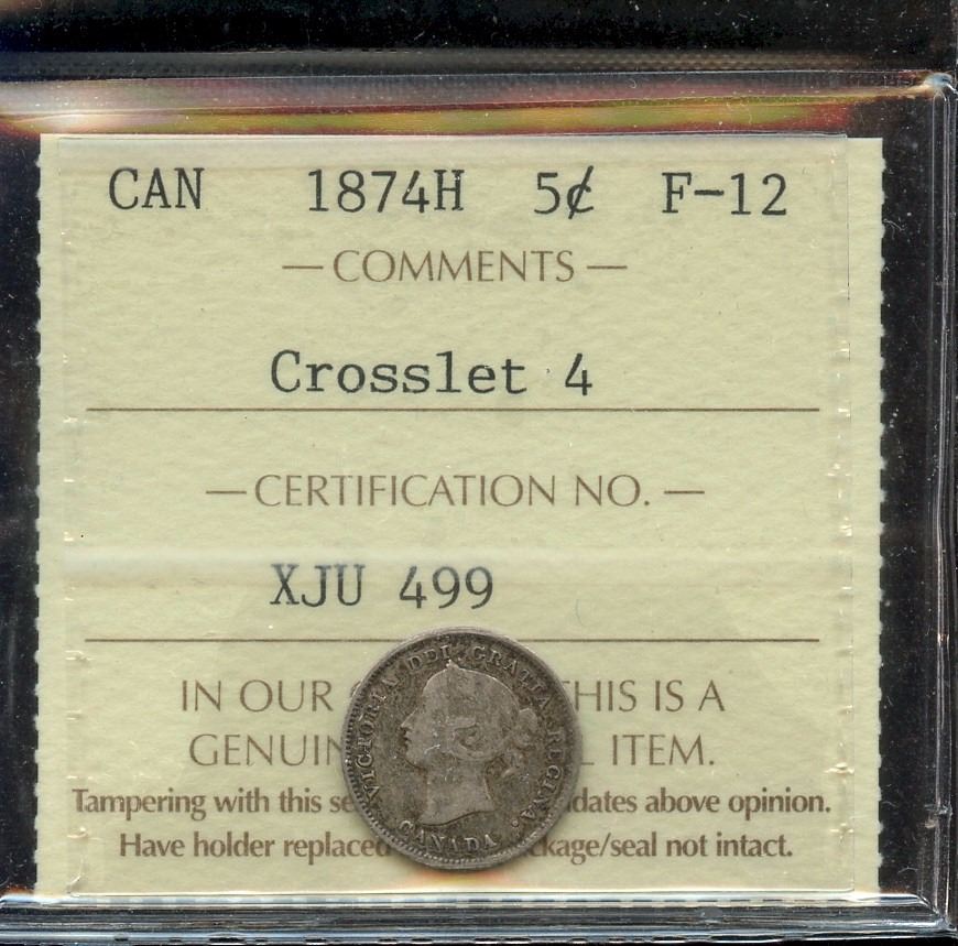 1874H 5¢ Crosslet 4, ICCS F-12.