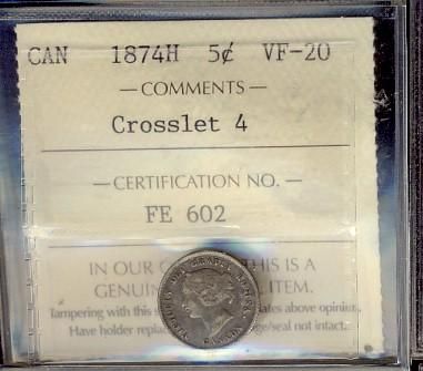 1874H 5¢ Crosslet 4 ICCS VF20.