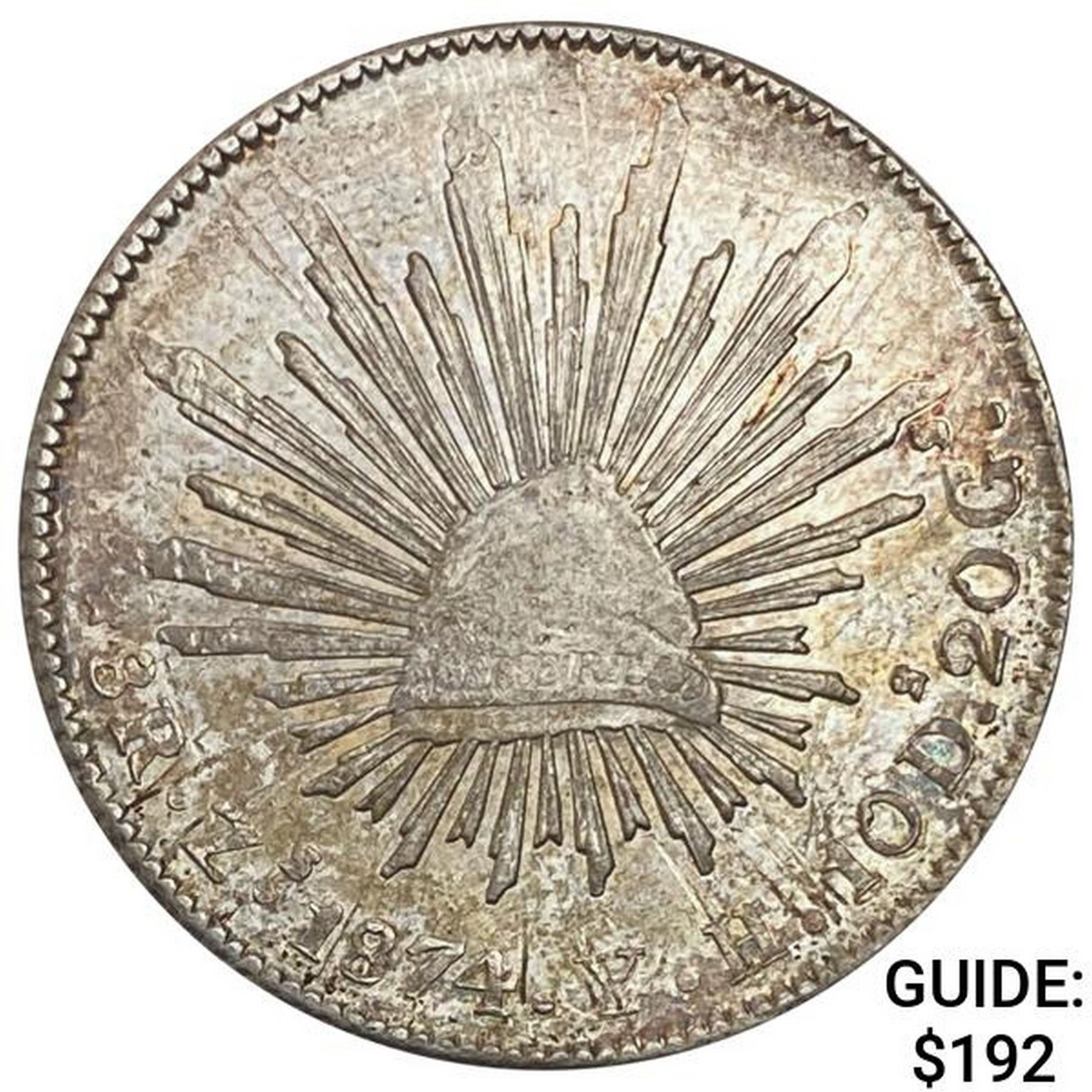 1874Zs YH Mexico Silver 8 Reales CLOSELY UNCIRCULATED