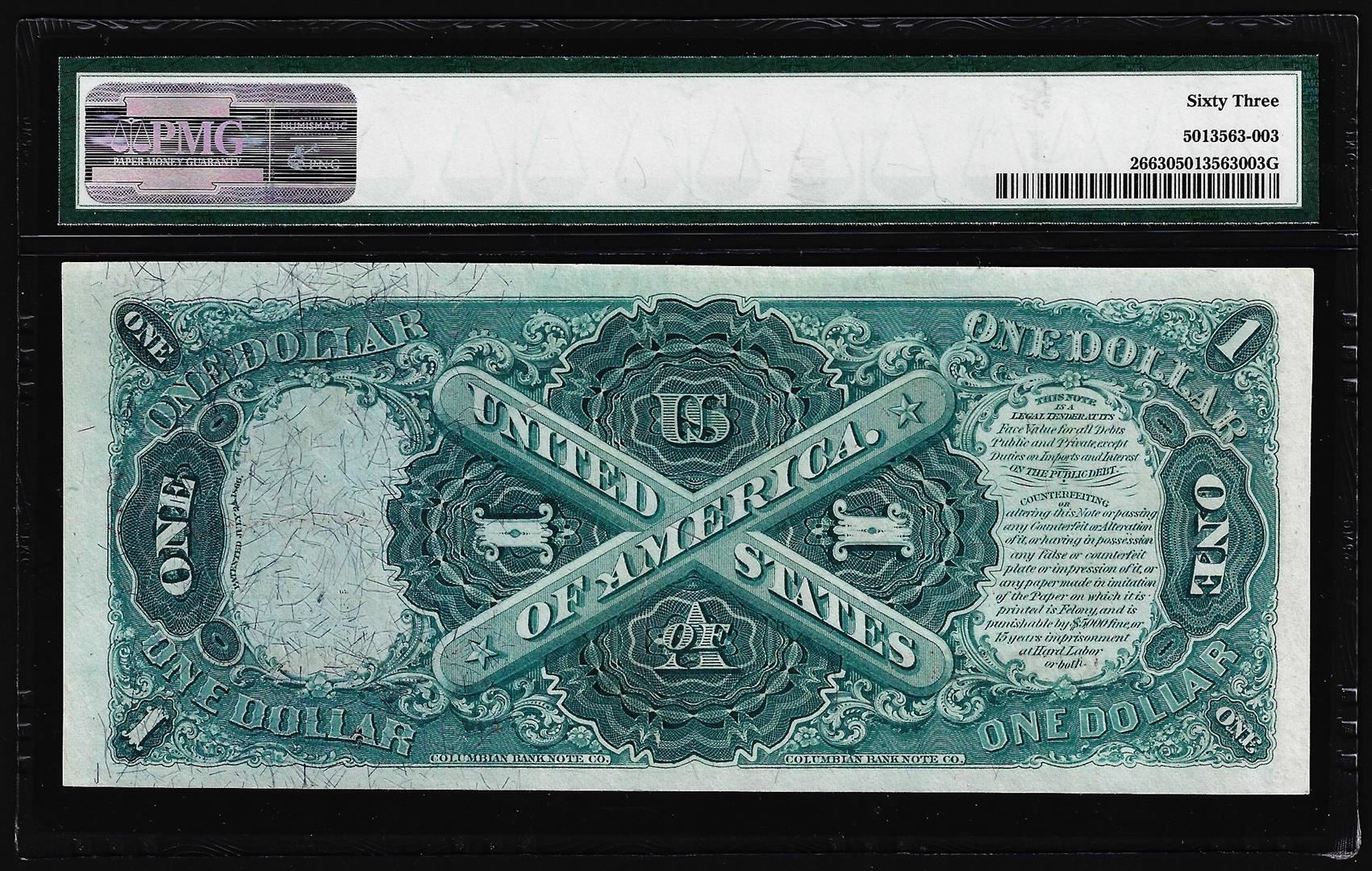 One 1875 $1 Legal Tender Note Fr.26 PMG Choice Uncirculated 63. PMG Certified.