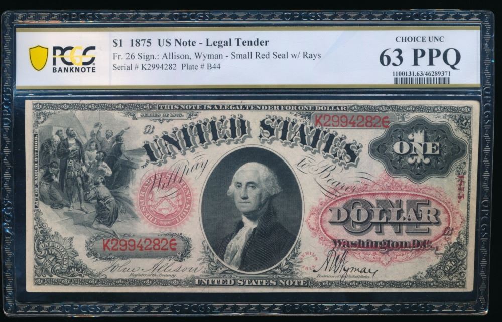 One 1875 $1 Legal Tender Note PCGS 63PPQ.