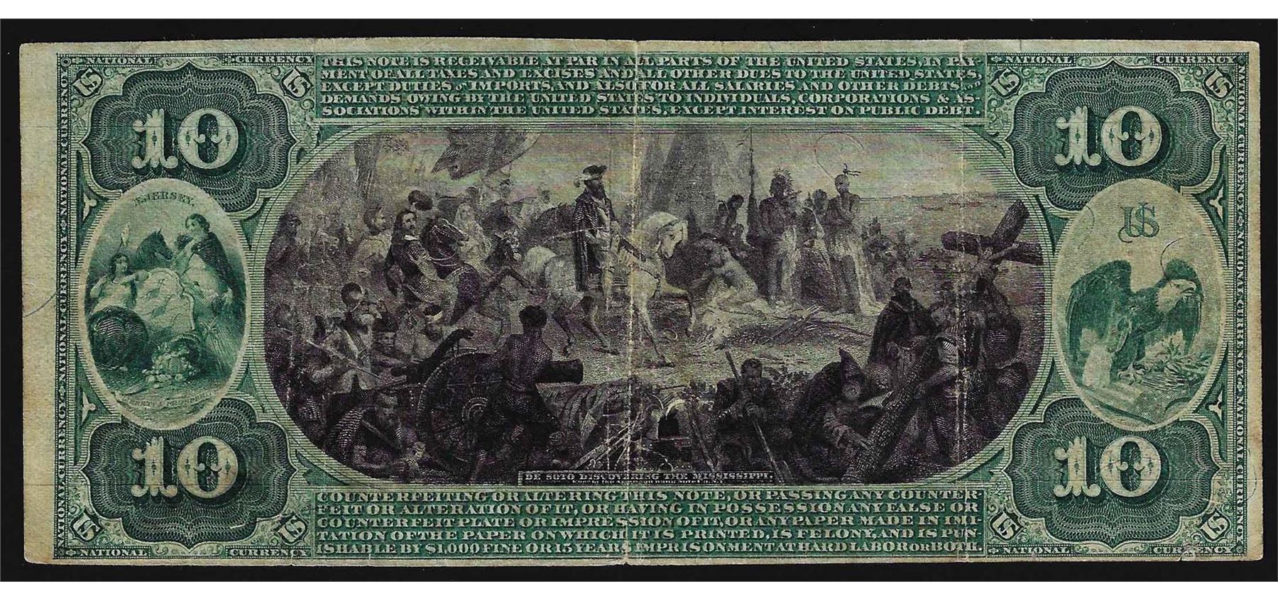 One 1875 $10 First National Bank CH# 281 Trenton, NJ National Currency Note.
