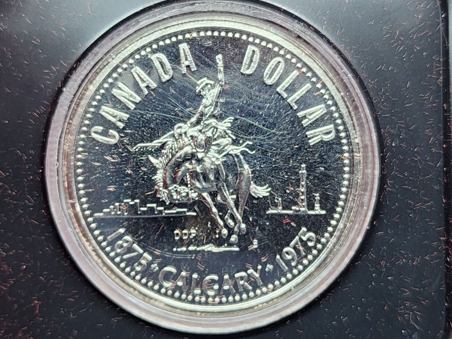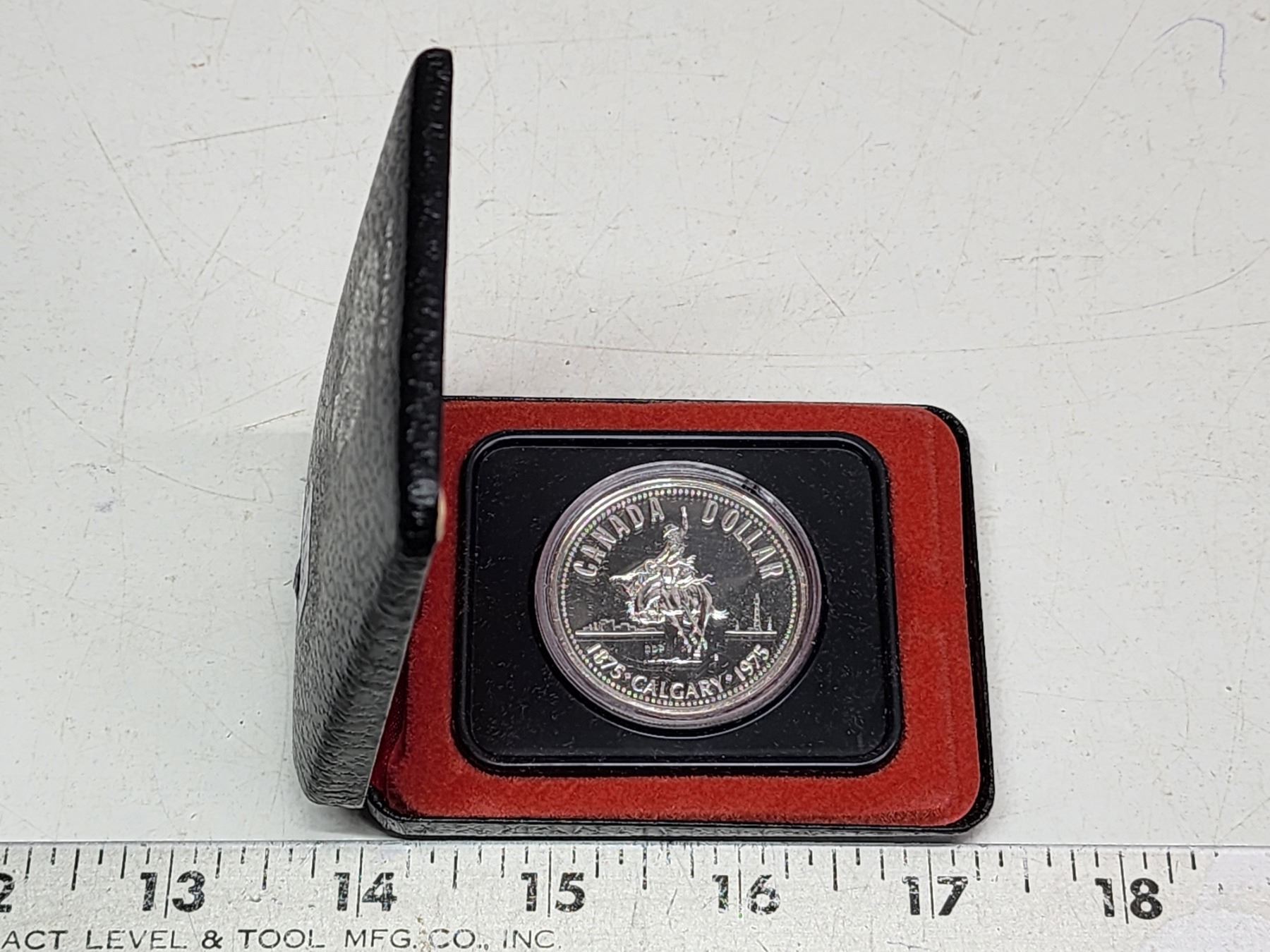 1875-1975 Calgary, Canadian silver dollar, in black clamshell case