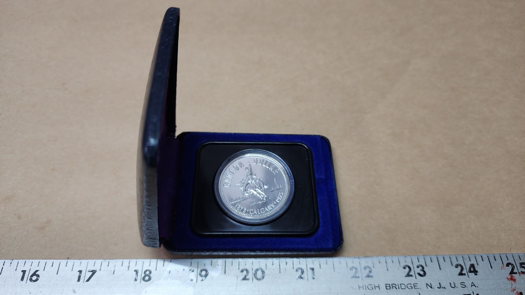 1875-1975 Calgary Canadian silver dollar - in clamshell case, nice cameo