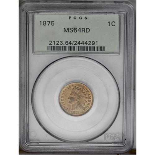 <B>1875<1C> MS64 Red PCGS.</B></I> A well struck and lustrous near-Gem, carefully preserved and free of contact marks, but displaying moderate carbon on the reverse.