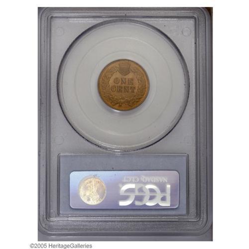 <B>1875<1C> MS65 Red PCGS.</B></I> Snow-3. This is the finest 1875 Indian cent that we have examined recently. The surfaces are ablaze with orange-red color that highlights the rich cartwheel sheen. Boldly, if not sharply struck throughout, both sides are smooth from rim to rim. Like Snow-1, this variety displays repunching south at the base of the 1 in the date. The separation between the under and overdigits, however, is wider on examples of Snow-3, giving such coins added desirability.