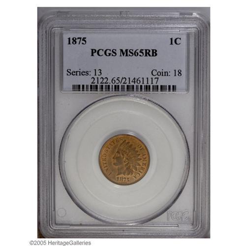 1875 1C MS65 Red and Brown PCGS. Bold N in ONE. Attrac 1875[1C] MS65 Red and Brown PCGS.