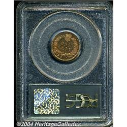 <B>1875<1C> PR64 Red and Brown PCGS.</B></I> Bright golden-tan patina with pale red and light green accents. Exquisitely struck, with no major impairments. This near-Gem possesses excellent eye appeal. Population: 75 in 64, 24 finer (9/04). <BR><BR><B>Important notice:</B> Heritage usually auctions material at the rate of 200-250 lots per hour. On some occasions eBay Live bid software or the Internet may not be able to keep up with the pace of the auction. We recommend placing a realistic absentee bid now as insurance to avoid disappointment. Occasionally the auctioneer may eliminate or reject an eBay Live bid, and the auctioneer may also reopen a lot after the close of the eBay live bidding (usually because we missed an audience bid), and may reject your bid even if it shows you as the winning bidder. By bidding via eBay Live, you agree that Heritage may award the lot to another bidder at its sole discretion under the circumstances described above or any other reasonable circumstances. Since eBay bids are not shown to us until we open the lot on the floor, we treat those bids just like floor bids. In most cases the floor responds before the eBay bid is presented to us, due to Internet lag time, so for consistency we have made it a policy that floor bids are always considered first over tie eBay live bids. Also please note that all Heritage lots purchased through eBay Live carry a 20% Buyer's Premium. Please make sure you read the Terms and Conditions before you bid.