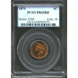 1875 1C PR65 Red PCGS. Snow-2. This variety is characterized by minor repunching above the flag of t
