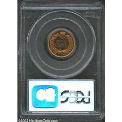 1875 1C PR65 Red PCGS. Snow-2. This variety is characterized by minor repunching above the flag of the 5 in the date and is a scarcer proof variant as such. The surfaces are even red over both sides with deeply mirrored fields. A few specks of carbon keep this flashy piece from a full PR66 grade.From the "Newmismatist" Collection; the All-Time #1 PCGS Registry Set. Important notice: We expect to be auctioning lots at the rate of 200-250 per hour. Sometimes eBay Premier live bid software cannot keep up with that pace, so we strongly recommend that you place a realistic proxy bid now as insurance to avoid disappointment. Also please note that all Heritage/CAA lots purchased through eBay Premier carry a 20% Buyer's Premium. Please make sure you read the Terms and Conditions.