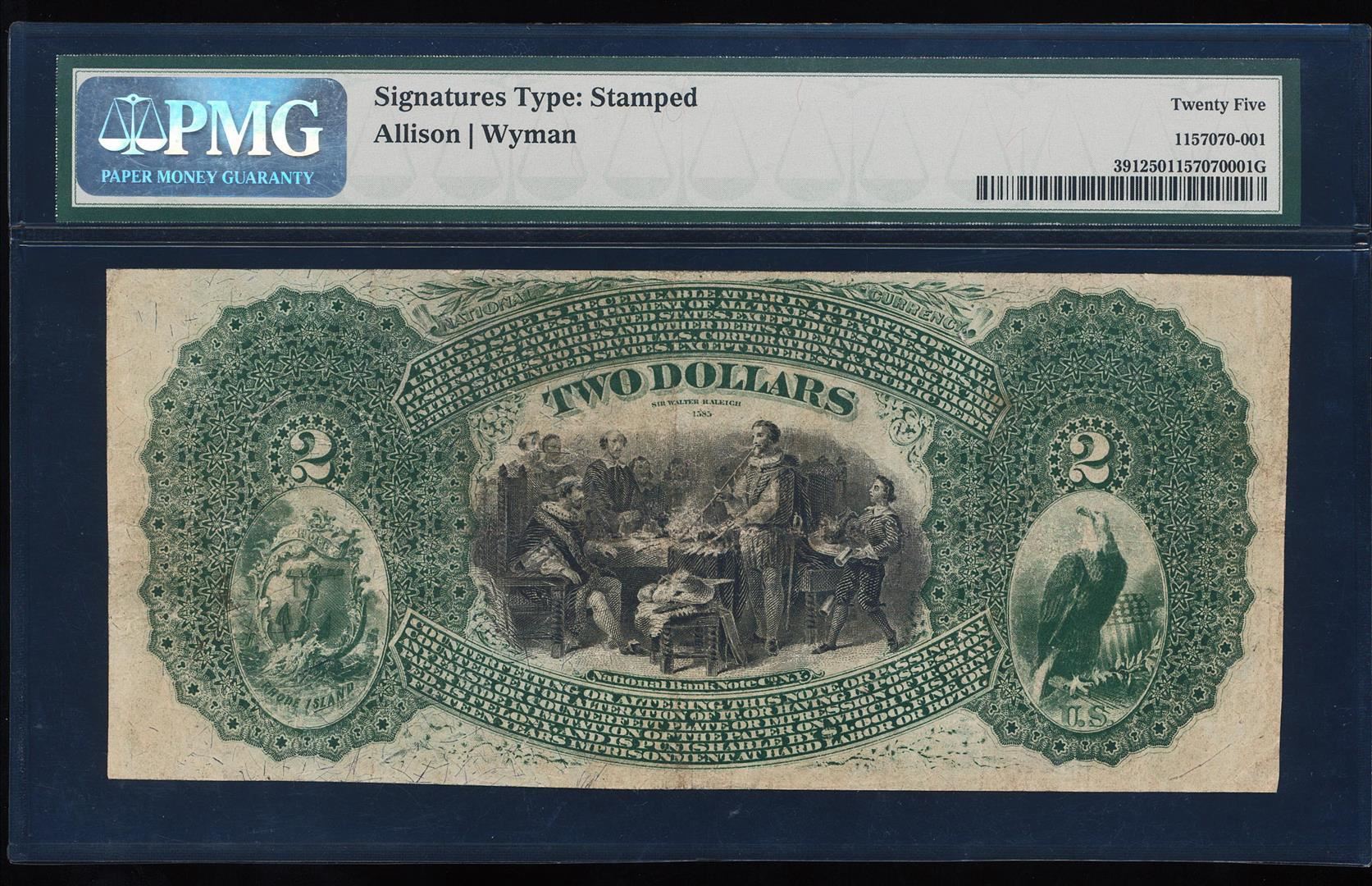 1875 $2 Lazy Deuce Providence, Rhode Island CH# 134 National Note PMG Very Fine 25