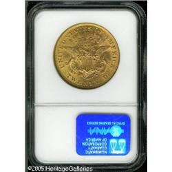 <B>1875 $20 AU58 NGC.</B></I> Rather extensively abraded but retaining most of the original mint luster. A popular Type Two twenty.<BR><I>From The Mike Jacobson Collection.</B></I> Lot:9094
