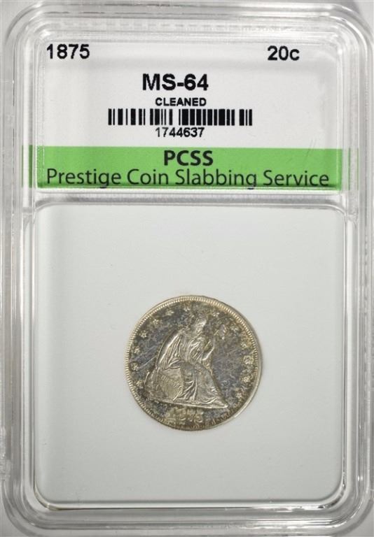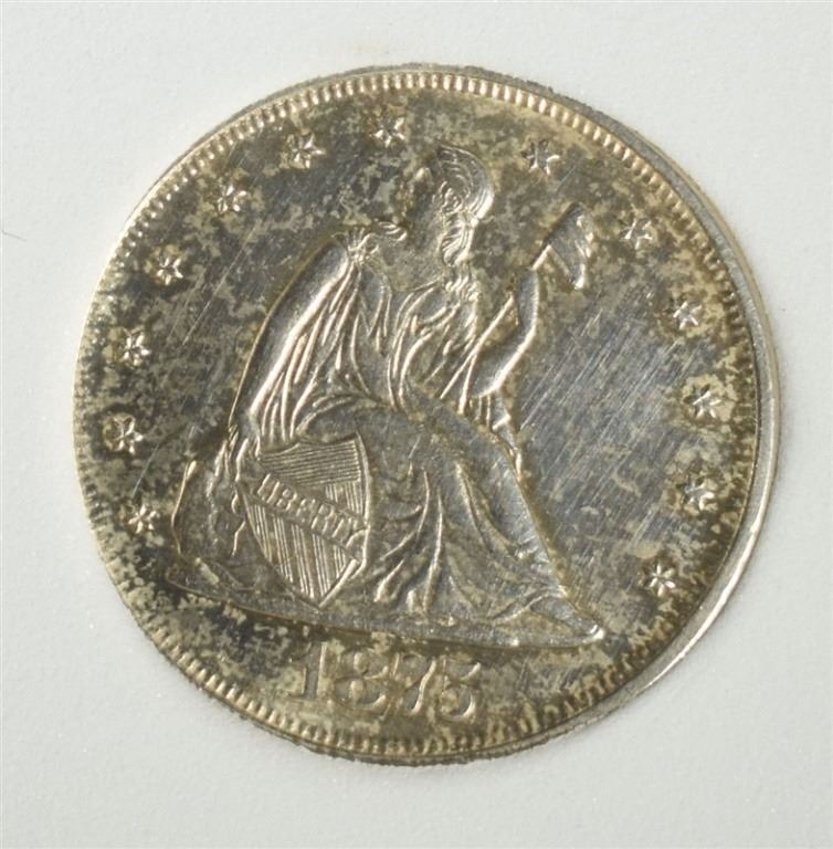 1875 20-CENT PIECE, PCSS CH/GEM BU cleaned ESTIMATE $1100 - $1200.