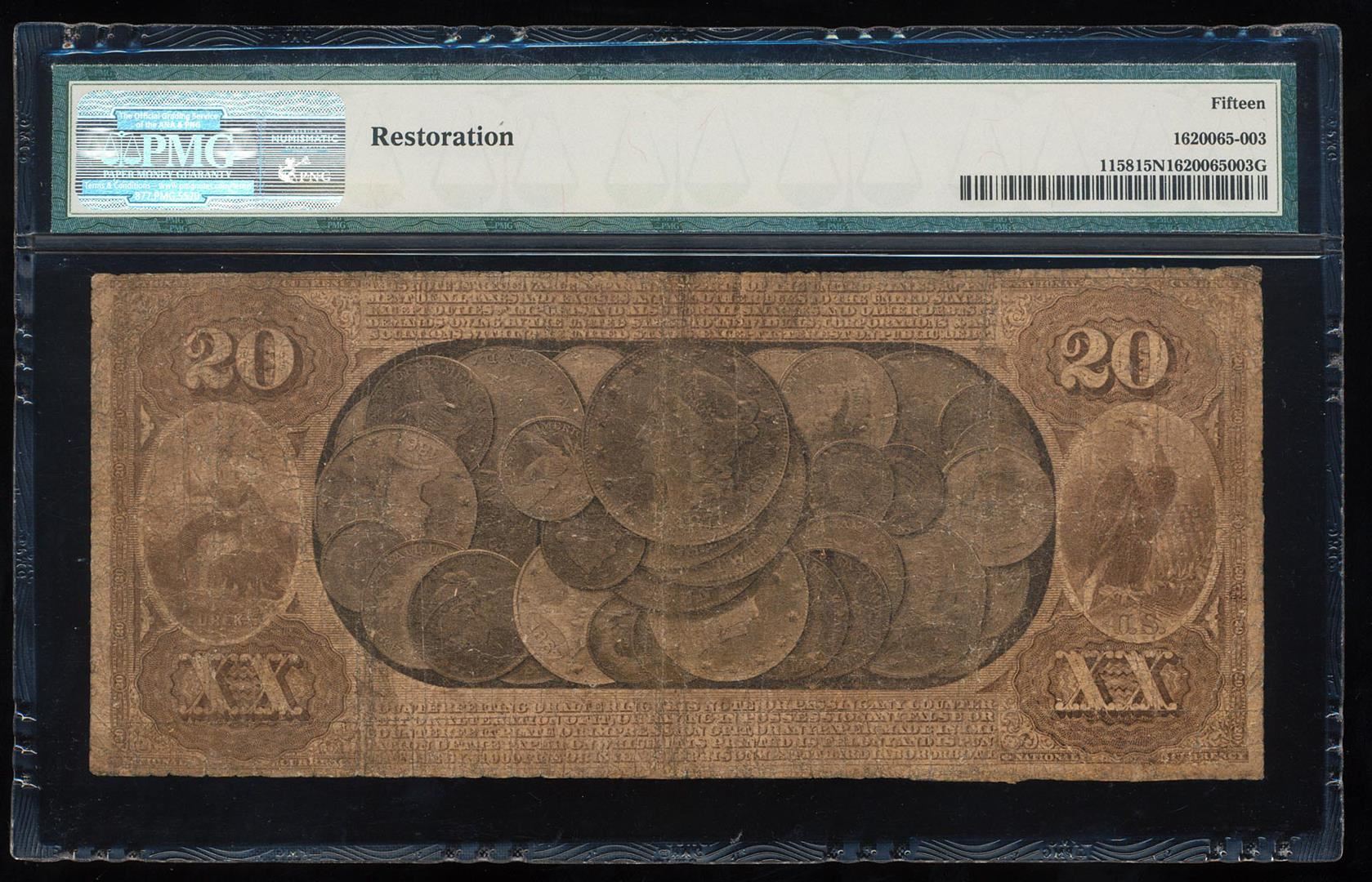 One 1875 $20 First National Gold Bank Oakland, CA CH# 2248 National Note PMG Ch. Fine 15 Net. PMG Certified.