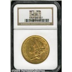 1875 $20 MS60 NGC. Deep, frosty mint luster, but