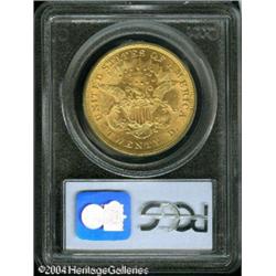 1875 $20 MS60 PCGS. Attractive yellow-copper appea <B>1875 $20 MS60 PCGS.</B></I> Attractive yellow-copper appearance with ample mint luster and excellent striking characteristics. This coin might have graded higher, but several large contact marks show on Liberty's face, and one is seen in the left obverse field area. Still an important coin, as Mint State Type Twos are infrequently encountered. <BR><BR><B>Important notice:</B> Heritage usually auctions material at the rate of 200-250 lots per hour. On some occasions eBay Live bid software or the Internet may not be able to keep up with the pace of the auction. We recommend placing a realistic absentee bid now as insurance to avoid disappointment. Occasionally the auctioneer may eliminate or reject an eBay Live bid, and the auctioneer may also reopen a lot after the close of the eBay live bidding (usually because we missed an audience bid), and may reject your bid even if it shows you as the winning bidder. By bidding via eBay Live, you agree that Heritage may award the lot to another bidder at its sole discretion under the circumstances described above or any other reasonable circumstances. Since eBay bids are not shown to us until we open the lot on the floor, we treat those bids just like floor bids. In most cases the floor responds before the eBay bid is presented to us, due to Internet lag time, so for consistency we have made it a policy that floor bids are always considered first over tie eBay live bids. Also please note that all Heritage lots purchased through eBay Live carry a 20% Buyer's Premium. Please make sure you read the Terms and Conditions before you bid. This lot is being auctioned in conjunction with a live floor auction by Heritage Galleries & Auctioneers. All final auction and invoice information will be supplied by Heritage Galleries & Auctioneers, and all other information should be considered preliminary. Lot:6895