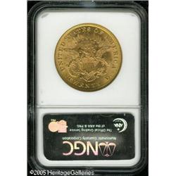 <B>1875 $20 MS61 NGC.</B></I> Several light abrasions interrupt the lustrous, peach-gold surfaces, particularly on the obverse. The design elements are generally nicely struck, save for softness in portions of Liberty's hair.<BR><I>From The Richard J. Chouinard Collection of United States Coins, Part Two.</B></I> Lot:9098