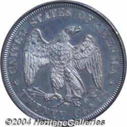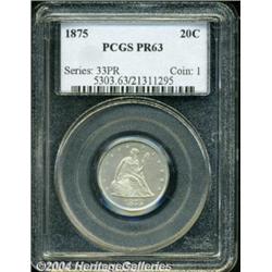 <B>1875<20C> PR63 PCGS.</B></I> Some light hairlining accounts for the grade, but the coin is extremely attractive, as lilac-gray toning frames the frosty devices to create a lovely, mild cameo effect, on each side. Sharply struck and carefully preserved, with a faint pinscratch evident in the left obverse field, and a couple of small handling marks on the reverse. <BR><BR><B>Important notice:</B> Heritage usually auctions material at the rate of 200-250 lots per hour. On some occasions eBay Live bid software or the Internet may not be able to keep up with the pace of the auction. We recommend placing a realistic absentee bid now as insurance to avoid disappointment. Occasionally the auctioneer may eliminate or reject an eBay Live bid, and the auctioneer may also reopen a lot after the close of the eBay live bidding (usually because we missed an audience bid), and may reject your bid even if it shows you as the winning bidder. By bidding via eBay Live, you agree that Heritage may award the lot to another bidder at its sole discretion under the circumstances described above or any other reasonable circumstances. Since eBay bids are not shown to us until we open the lot on the floor, we treat those bids just like floor bids. In most cases the floor responds before the eBay bid is presented to us, due to Internet lag time, so for consistency we have made it a policy that floor bids are always considered first over tie eBay live bids. Also please note that all Heritage lots purchased through eBay Live carry a 20% Buyer's Premium. Please make sure you read the Terms and Conditions before you bid. </span></font></tr></table></td></tr></table>