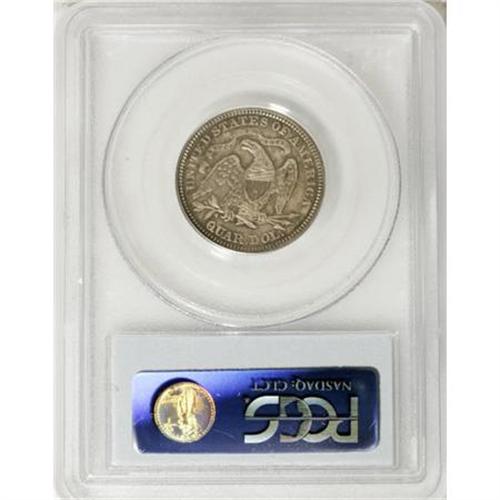 <B>1875 25C MS65 PCGS.</B></I> Richly toned in sea-green and violet hues, with a few pinpoint marks scattered about the obverse. Despite a mintage of nearly 4.3 million pieces, Gems are legitimately scarce. Population: 29 in 65, 19 finer (7/07).<BR><BR><B>Coin Engraver:</B> Christian Gobrecht<BR><BR><b>Shipping:</b> Coins & Currency (<a target="_blank" href="http://www.heritageauctions.com/common/shipping.php">view shipping information</a>\)