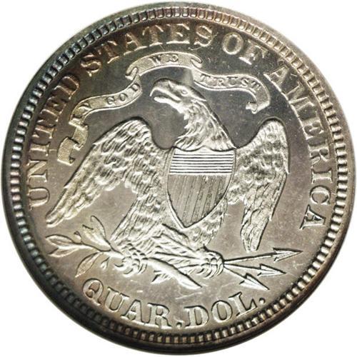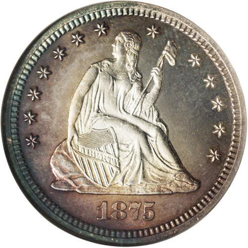 <B>1875<25C> PR66 Cameo NGC.</B></I> Type Two Reverse. The devices on both sides of this Premium Gem have bright silver luster. Deeply mirrored fields serve to frame the devices, and attractive iridescent toning around much of the border adds to the overall presentation.