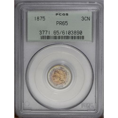 1875 3CN PR65 PCGS. FS-006.5, an errant 1 from the dat 1875[3CN] PR65 PCGS.