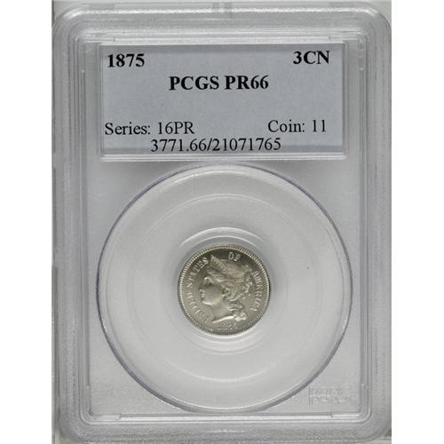1875 3CN PR66 PCGS. Fully struck and untoned, with bri