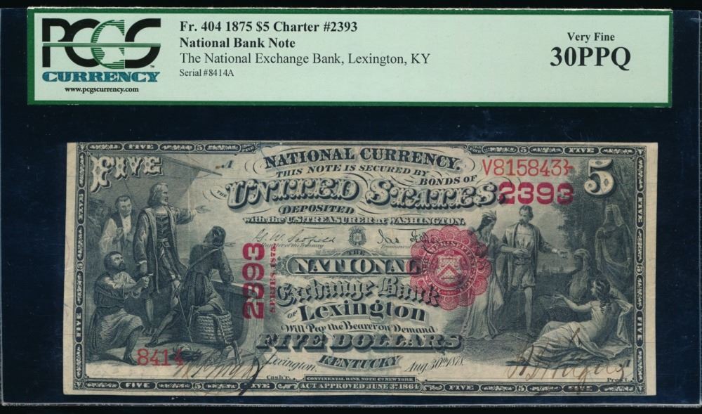 One 1875 $5 Lexington KY National PCGS 30PPQ.