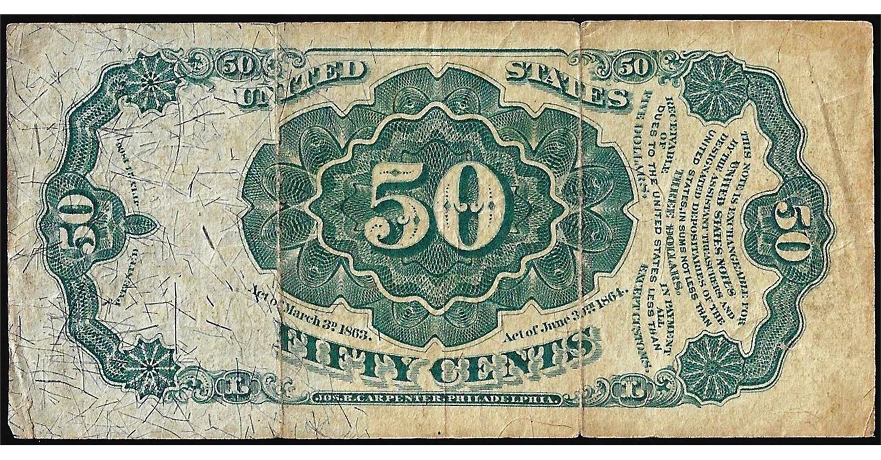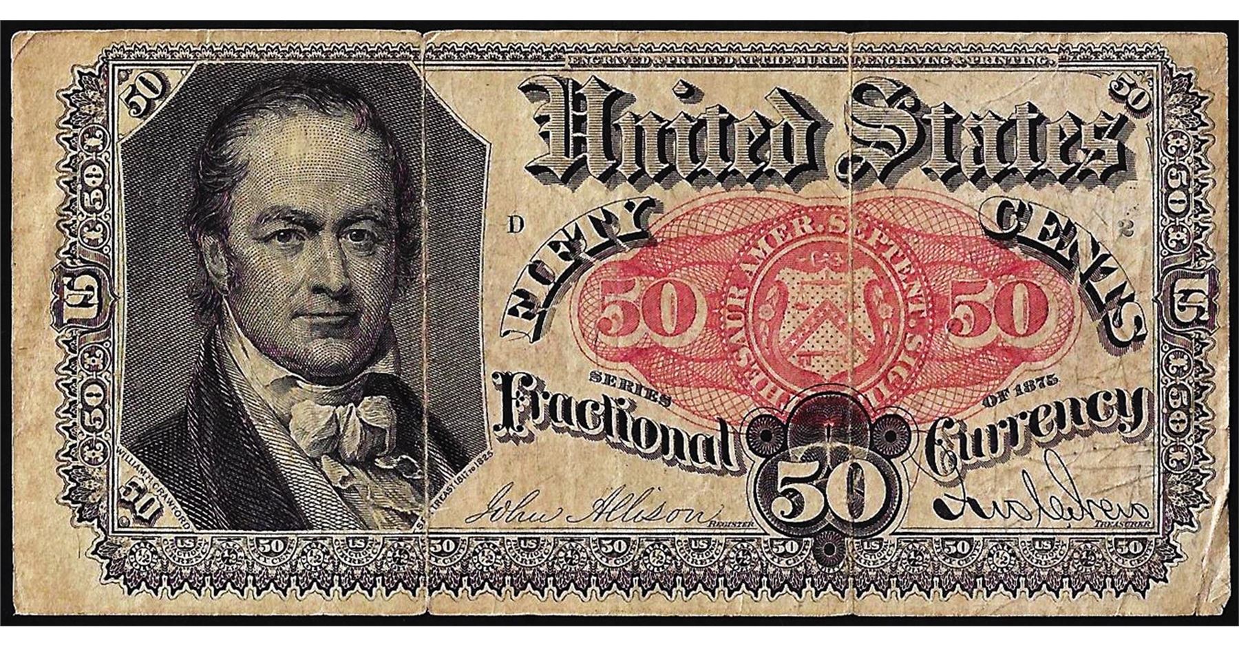 One 1875 50 Cents Fifth Issue Fractional Currency Note.