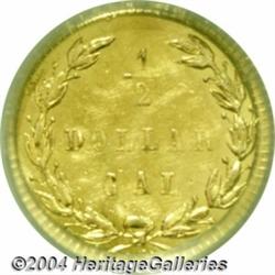 <B>1875<50C> Indian Round 50 Cents, BG-1037, R.4, MS65 NGC.</B></I> A flashy prooflike Gem that has a couple of minor planchet flaws (as made) along the left obverse border. A ghostly outline of the Indian is visible on the reverse, as produced. Similar to the rare BG-1036 variety, but the 875 in the date is widely spaced. A lofty grade, since as of (3/04), PCGS has not certified any pieces above MS64. <BR><BR><B>Important notice:</B> Heritage usually auctions material at the rate of 200-250 lots per hour. On some occasions eBay Live bid software or the Internet may not be able to keep up with the pace of the auction. We recommend placing a realistic absentee bid now as insurance to avoid disappointment. Occasionally the auctioneer may eliminate or reject an eBay Live bid, and the auctioneer may also reopen a lot after the close of the eBay live bidding (usually because we missed an audience bid), and may reject your bid even if it shows you as the winning bidder. By bidding via eBay Live, you agree that Heritage may award the lot to another bidder at its sole discretion under the circumstances described above or any other reasonable circumstances. Since eBay bids are not shown to us until we open the lot on the floor, we treat those bids just like floor bids. In most cases the floor responds before the eBay bid is presented to us, due to Internet lag time, so for consistency we have made it a policy that floor bids are always considered first over tie eBay live bids. Also please note that all Heritage lots purchased through eBay Live carry a 20% Buyer's Premium. Please make sure you read the Terms and Conditions before you bid. </span></font></tr></table></td></tr></table>