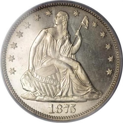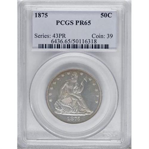 <B>1875 50C PR65 PCGS.</B></I> Light chestnut-gold toning visits this satiny Gem. The strike is intricate aside from trivial inexactness on the forehead curls and the eagle's left (facing) ankle. All stars have razor-sharp centrils. The fields are void of hairlines, and the knees show only subtle contact. Population: 21 in 65, 5 finer (11/07).<BR><I>From The Kallenberg #1 PCGS Registry Set Of Proof Half Dollars.</B></I><BR><BR><B>Coin Engraver:</B> Christian Gobrecht<BR><BR><b>Shipping:</b> Coins & Currency (<a target="_blank" href="http://www.heritageauctions.com/common/shipping.php">view shipping information</a>)