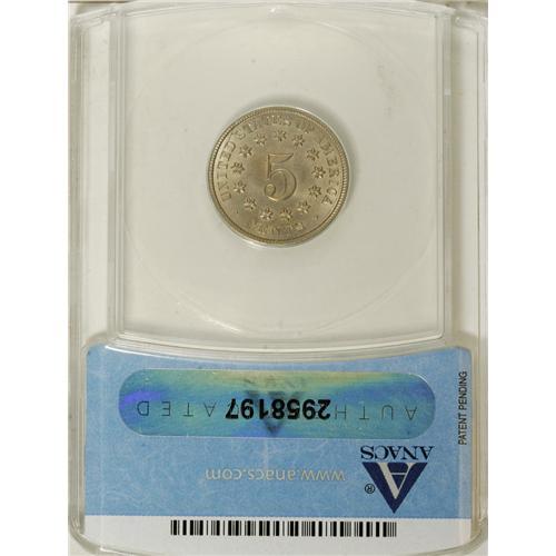 <B>1875 5C MS63 ANACS.</B></I> NGC Census: (14/84). PCGS Population (35/73). Mintage: 2,097,000. Numismedia Wsl. Price: $312. (#3804)<BR><BR><b>Shipping:</b> Coins & Currency (<a target="_blank" href="http://www.heritageauctions.com/common/shipping.php">view shipping information</a>)