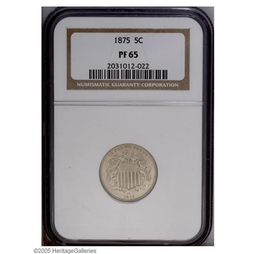 1875 5C PR65 NGC. Exquisitely struck, with light gray 1875[5C] PR65 NGC.