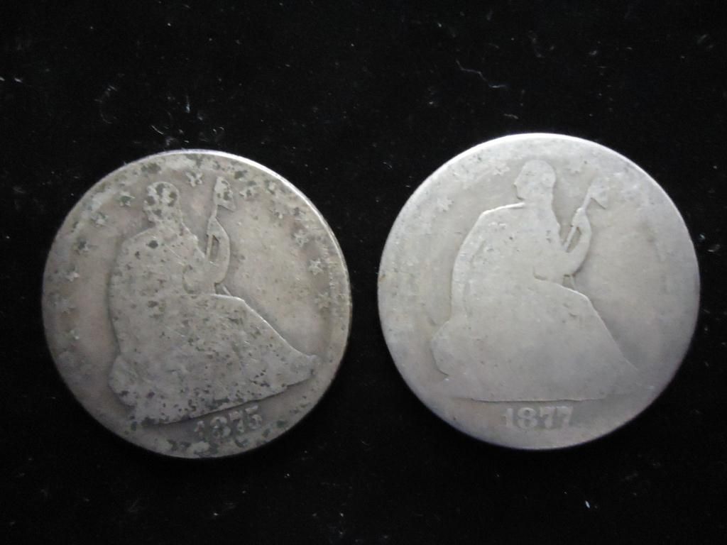1875 & 77 SEATED LIBERTY HALF DOLLARS