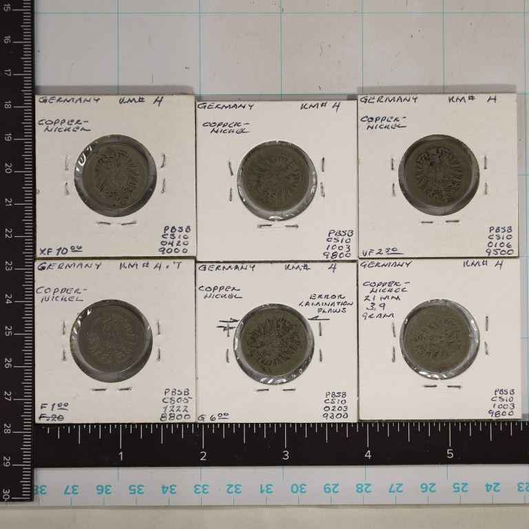 1875-A, B, D, G, H & J GERMAN 10 PFENNING COINS
