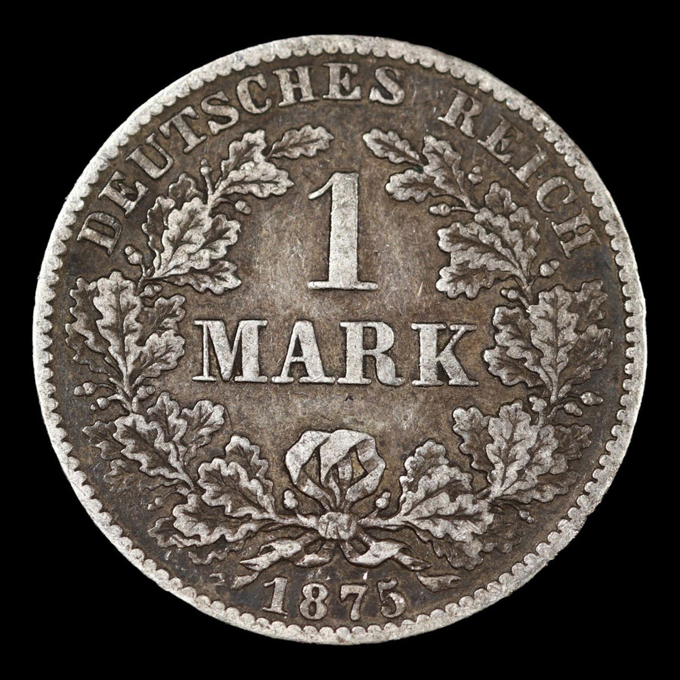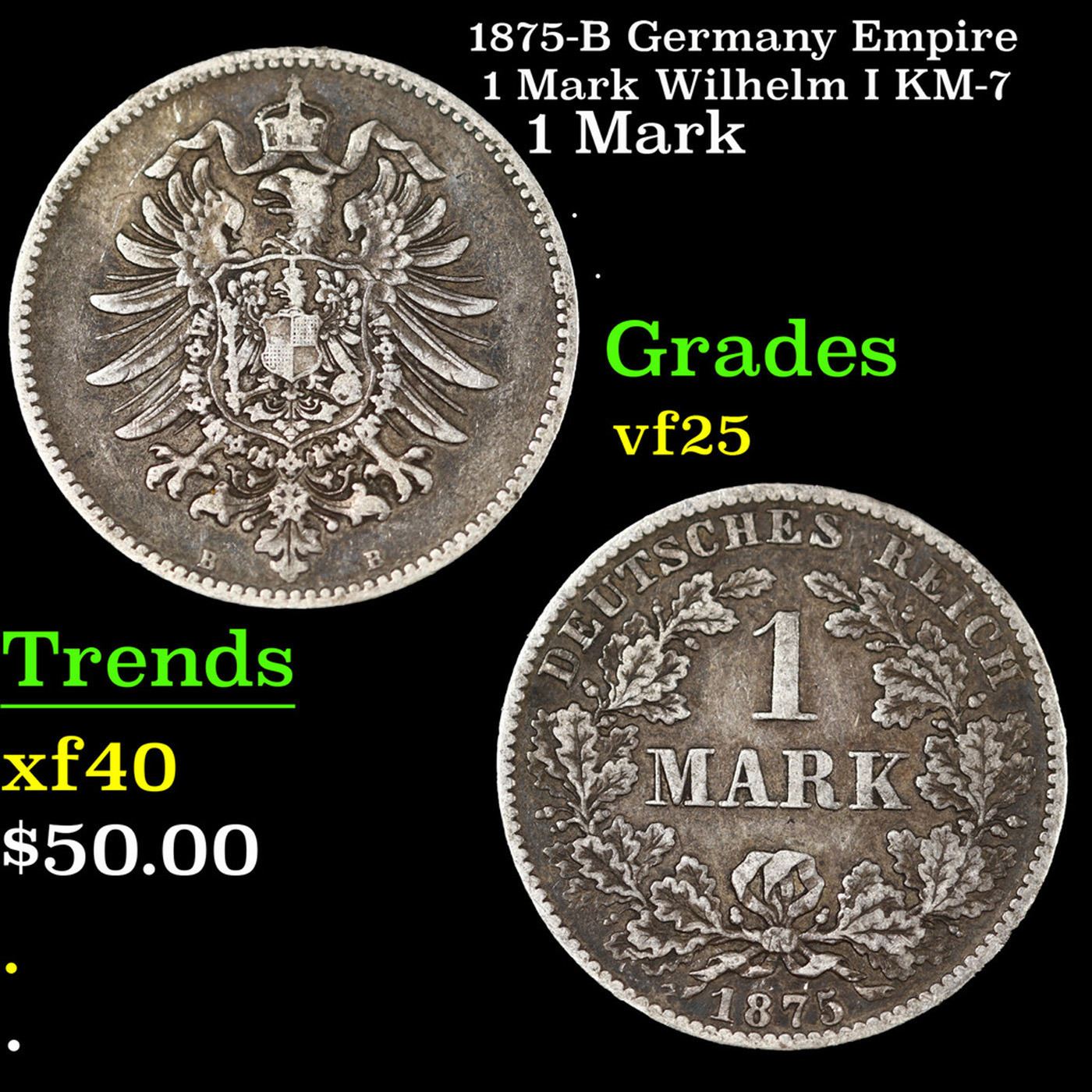 1875-B Germany Empire 1 Mark Wilhelm I KM-7 Grades vf+.