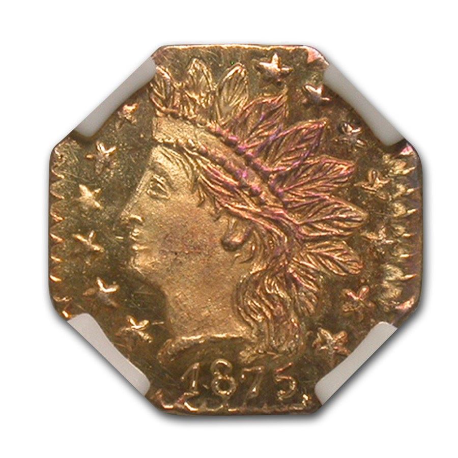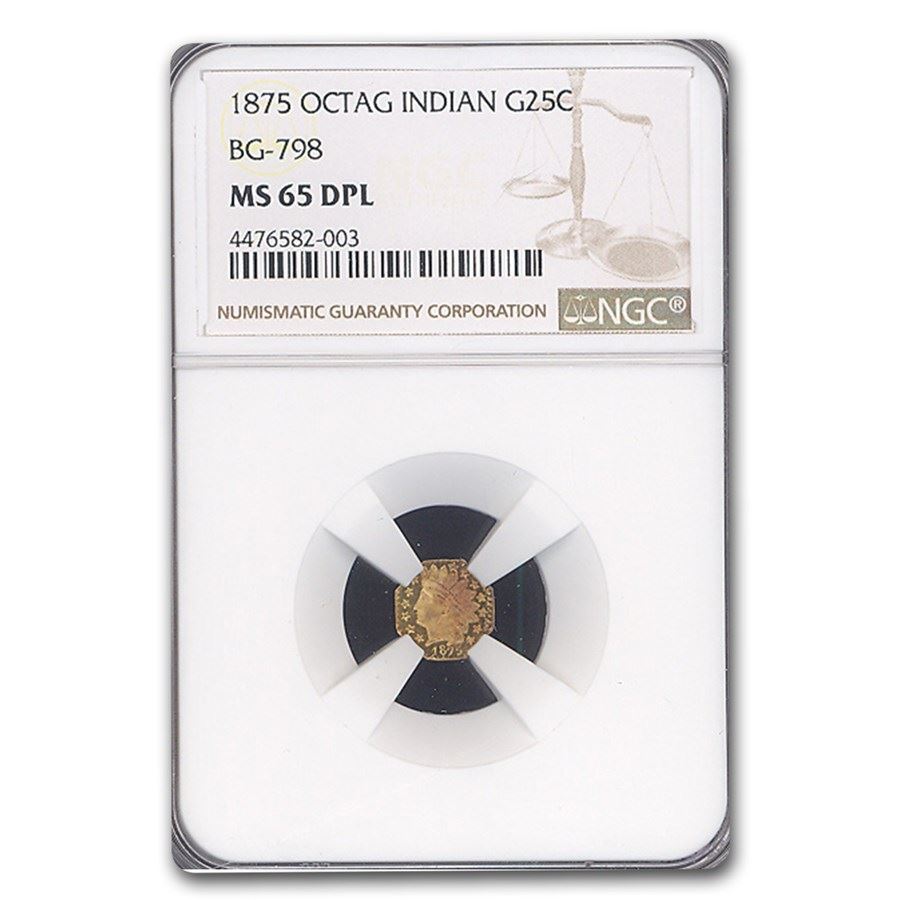 1875 BG-798 Indian Octagonal 25 Cent Gold MS-65 NGC (DPL)