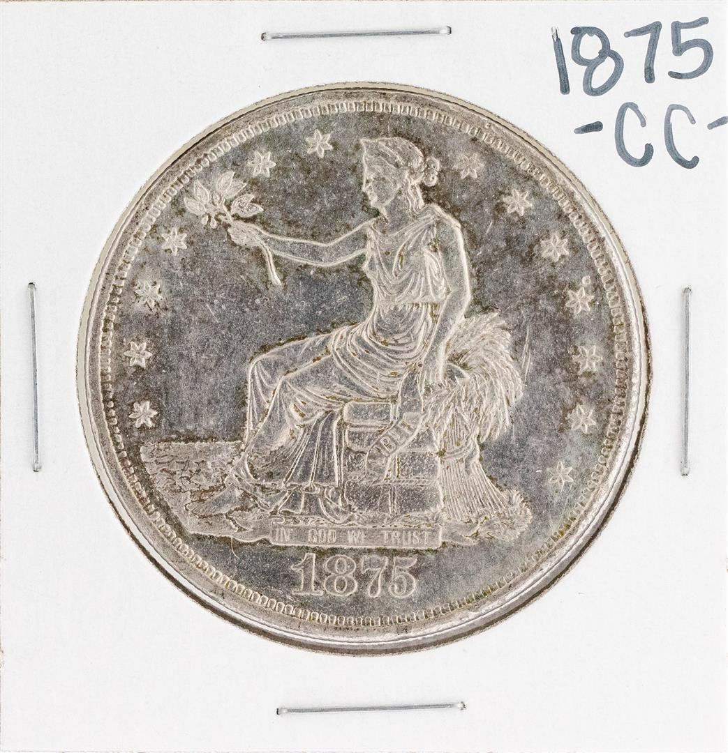 One 1875-CC $1 Seated Liberty Silver Dollar Coin.