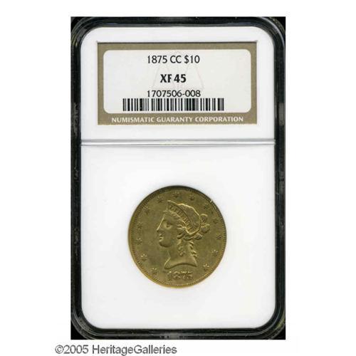 1875-CC $10 XF45 NGC. Except for the 1874-CC, Carson C 1875-CC[$10] XF45 NGC.