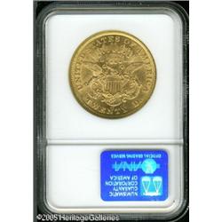 <B>1875-CC $20 AU58 NGC.</B></I> Quite frosty with nearly complete mint luster, interrupted only by very minor scuffiness. Attractive straw-gold color on both sides. Lot:9103