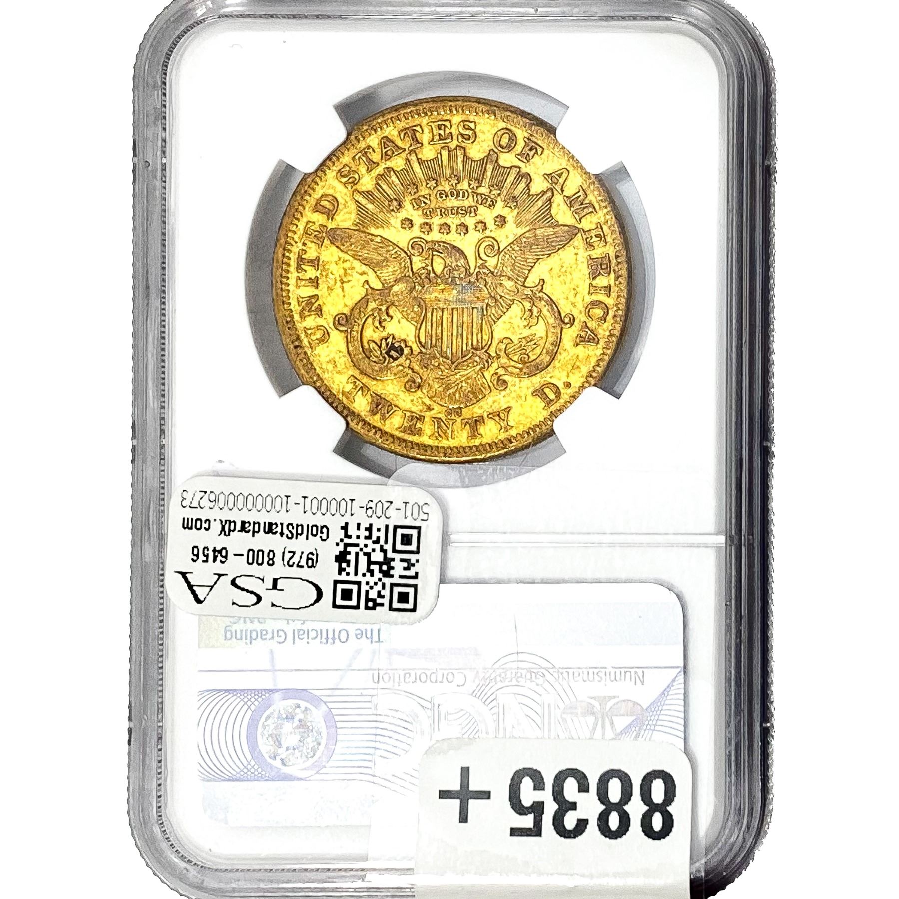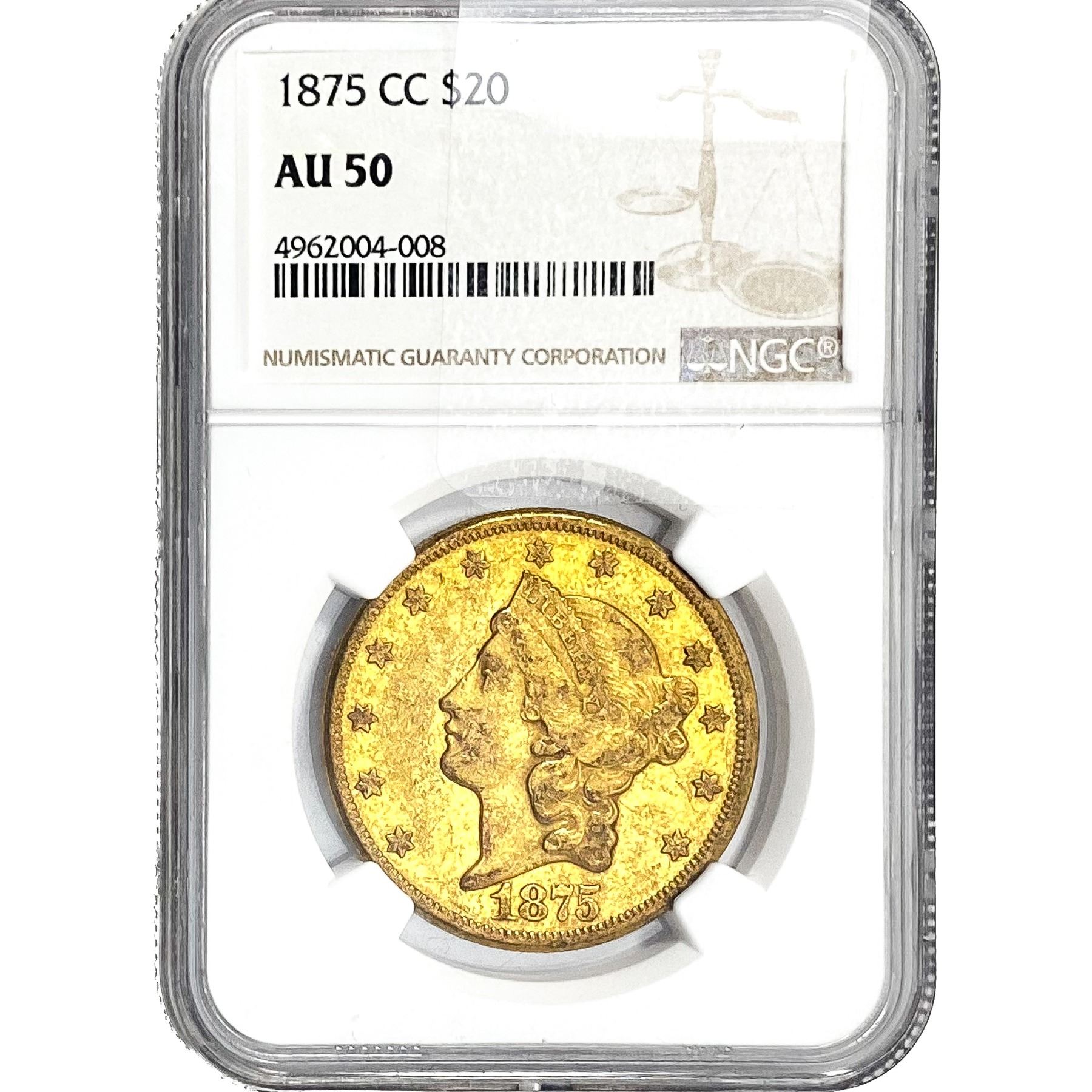 1875-CC $20 Gold Double Eagle NGC AU50