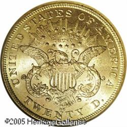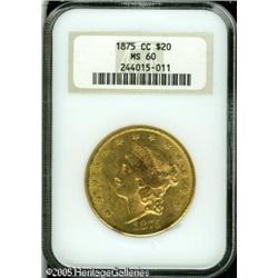 <B>1875-CC $20 MS60 NGC.</B></I> Minimally abraded for the grade with copper coloration seen in Liberty's hair and on two areas along the lower rims. A low mintage issue with a little over 110,000 pieces coined. Housed in an older NGC holder.<BR><I>Ex: Stacks 10/97, lot 1697.</B></I><BR><I>From The Richard J. Chouinard Collection of United States Coins, Part Two.</B></I> Lot:9105