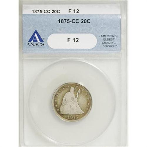 <B>1875-CC 20C F12 ANACS.</B></I> . NGC Census: (6/397). PCGS Population (15/551). Mintage: 133,290. Numismedia Wsl. Price for NGC/PCGS coin in F12: $325. (#5297)<BR><BR><B>Coin Engraver:</B> William Barber<BR><BR><b>Shipping:</b> Coins & Currency (<a target="_blank" href="http://www.heritageauctions.com/common/shipping.php">view shipping information</a>)