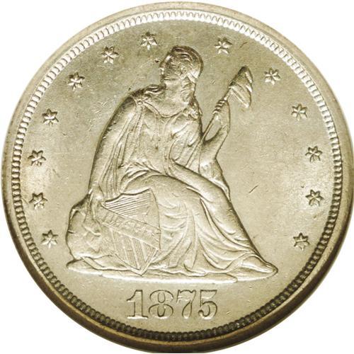 <B>1875-CC<20C> MS63 NGC.</B></I> Silver-gray lustrous surfaces exhibit whispers of tan-gold and well impressed design features, except for some of the usual softness that is apparent on the eagle's breast. The grade is defined by a few light abrasions in the fields and in the upper right part of the shield. A popular Carson City representative.