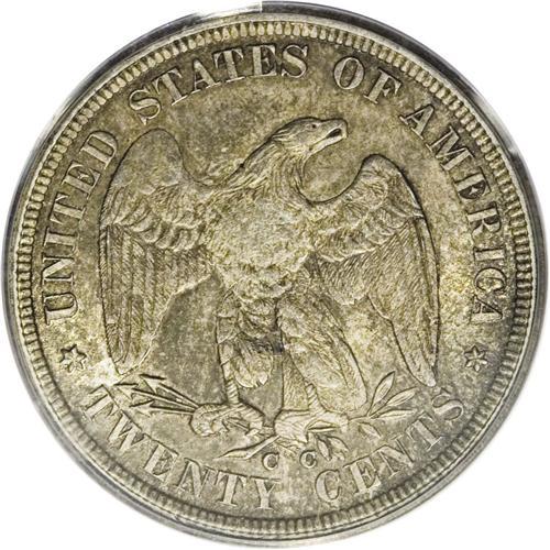 <B>1875-CC 20C MS63 PCGS.</B></I> Pleasing luster emanates from both sides of this Carson City twenty cent piece that is bathed in two shades of natural gray toning. The design features are generally well brought up, as evidenced by relatively sharp definition on Liberty's hair and foot, the star centers, and the eagle's plumage, though the upper right (left facing) wing and the breast feathers are soft. There are no significant contact marks apparent.<BR><BR><b>Shipping:</b> Coins & Currency (<a target="_blank" href="http://www.heritageauctions.com/common/shipping.php">view shipping information</a>)
