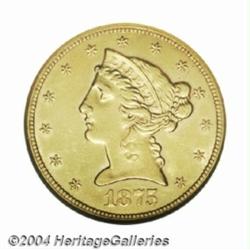 <table><tbody><tr><td><table> <TR><TD width="100%"><TABLE cellSpacing=1 cellPadding=3 width="100%" border=0><TBODY><TR><TD width="100%" bgColor=#79735c><FONT face=arial color=#ffffff size=3><B>Description</B> </FONT></TD></TR><TR><TD width="100%" bgColor=#ffffff><FONT face=arial size=2><B>1875-CC $5 --Cleaned--ANACS. AU Details, Net XF40.</B></I> Winter 1-B. A predictably elusive Carson City Half Eagle, one of just 11,828 pieces struck, that saw heavy 19th century demand and is rarely encountered today above the XF grade level. This minimally circulated example displays excellent sharpness and few appreciable surface marks, although being somewhat dulled by an old cleaning. Two small patches of corrosion are seen along the lower reverse border.<BR><I>From The New Millennium Collection, Part 3.</B></I> </FONT></TD></TR></TBODY></TABLE></TD></TR></TBODY></TABLE><BR><A name=PricesRealized></A><TABLE cellSpacing=0 cellPadding=0 width="100%" bgColor=#000000 border=0><TBODY><TR><TD width="100%"><TABLE cellSpacing=1 cellPadding=3 width="100%" border=0><TBODY><TR><TD width="100%" bgColor=#79735c><A name=PR><FONT face=arial color=#ffffff size=3><B>Previous Prices from Heritage Auctions</B> </FONT></A></TD></TR><TR><TD bgColor=#f6f6ed><TABLE cellSpacing=0 cellPadding=0 width="100%" border=1><TBODY><TR><TD align=middle width="33%"><B>Date</B></TD><TD align=middle width="33%"><B>Service</B></TD><TD align=middle width="33%"><B>Price</B></TD></TR><TR bgColor=whitesmoke><TD width="33%"><B>07/30/1994</B></TD><TD width="33%">PCGS</TD><TD width="33%">$3,520.00</TD></TR><TR bgColor=whitesmoke><TD width="33%"><B>11/01/1996</B></TD><TD width="33%">PCGS</TD><TD width="33%">$2,915.00</TD></TR></TBODY></TABLE></TD></TR><TR><TD bgColor=#ffffff><FONT face=arial size=1 ?>PLEASE NOTE: All prices realized reflect the final hammer price PLUS the buyer's premium in auctions that charge a buyer's premium. Each item has a notation at the top of the listing indicating whether that lot included a buyer's premium. Example: A item that sells with a final hammer price of $100 and a 20% buyer's premium will display with a price realized of $120. All information listed is intended to be as accurate as possible, but errors are possible. Please use this guide carefully and inform us of any inaccuracies. </FONT></TD></TR></TBODY></TABLE></TD></TR></TBODY></TABLE><BR><TABLE cellSpacing=0 cellPadding=0 width="100%" bgColor=#000000 border=0><TBODY><TR><TD width="100%"><TABLE cellSpacing=1 cellPadding=3 width="100%" border=0><TBODY><TR><TD width="100%" bgColor=#79735c colSpan=6><FONT face=arial color=#ffffff size=3><B>Price Guide*</B> </FONT></TD></TR><TR bgColor=#f6f6ed><TD align=middle><B>Grade</B> </TD><TD align=middle><B>Coin World<BR>(Trends)</B> </TD><TD align=middle><B>Numismedia<BR>Retail</B> </TD><TD align=middle><B>Numismedia<BR>Wholesale</B> </TD><TD align=middle><B>Coin<BR>Universe</B> </TD><TD align=middle><B>Heritage<BR>Value Index</B> </TD></TR><TR bgColor=#ffffff><TD align=middle>35</TD><TD align=right>---</TD><TD align=right>---</TD><TD align=right>---</TD><TD align=right>---</TD><TD align=right>$2,232.83</TD></TR><TR style="FONT-WEIGHT: bold" bgColor=#cccfdd><TD align=middle>40</TD><TD align=right>$3,600.00</TD><TD align=right>---</TD><TD align=right>$4,125.00</TD><TD align=right>$4,700.00</TD><TD align=right>$2,972.50</TD></TR><TR bgColor=#ffffff><TD align=middle>45</TD><TD align=right>$5,500.00</TD><TD align=right>---</TD><TD align=right>---</TD><TD align=right>---</TD><TD align=right>$4,535.00</TD></TR><TR bgColor=#ffffff><TD colSpan=6><FONT size=1>*All information listed is intended to be as accurate as possible, but errors are possible. No item may be returned or refused based on this information which is provided as a service to our customers. You should contact each pricing source directly to determine the accuracy of this information. </FONT></TD></TR></TBODY></TABLE></TD></TR></TBODY></TABLE><BR><TABLE cellSpacing=0 cellPadding=0 width="100%" bgColor=#000000 border=0><TBODY><TR><TD width="100%"><TABLE cellSpacing=1 cellPadding=3 width="100%" border=0><TBODY><TR><TD width="100%" bgColor=#79735c><FONT face=arial color=#ffffff size=3><B>Population Guide</B> </FONT></TD></TR><TR bgColor=#ffffff><TD align=middle><!-- Begin Output of Population Grid--><TABLE cellSpacing=0 cellPadding=0 width="100%" border=0><TBODY><TR><TD vAlign=center><TABLE cellSpacing=0 width="100%" border=1 cellsadding="3"><TBODY><TR><TD vAlign=center><TABLE cellSpacing=0 cellPadding=3 width="100%" border=1><TBODY><TR><TD vAlign=center align=middle bgColor=#f0f1e8 colSpan=2 <CENTER><FONT face=Arial size=2><B>PCGS Pop </B></FONT><CENTER></CENTER></TD><TD vAlign=center align=middle bgColor=#f0f1e8 colSpan=2><CENTER><FONT face=Arial size=2><B>NGC Pop</B></CENTER></FONT></TD></TR><TR><TD vAlign=center><FONT face=Arial size=2>(40)</FONT> </TD><TD vAlign=center align=right><FONT face=Arial size=2>13</FONT> </TD><TD vAlign=center><FONT face=Arial size=2>(40)</FONT> </TD><TD vAlign=center align=right><FONT face=Arial size=2>5</FONT> </TD></TR><TR><TD vAlign=center><FONT face=Arial size=2>(>40)</FONT> </TD><TD vAlign=center align=right><FONT face=Arial size=2>30</FONT> </TD><TD vAlign=center><FONT face=Arial size=2>(>40)</FONT> </TD><TD vAlign=center align=right><FONT face=Arial size=2>59</FONT> </TD></TR></TBODY></TABLE></TD></TR></TBODY></TABLE></TD></TR></TBODY></TABLE><!-- End Output of Population Grid--></TD></TR></TBODY></TABLE></TD></TR></TBODY></TABLE><BR><TABLE cellSpacing=0 cellPadding=0 width="100%" bgColor=#000000 border=0><TBODY><TR> <font color='#000000'><span style='background-color: #FFFFFF'><td bgcolor='#FFFFFE'> Important notice: Heritage usually auctions material at the rate of 200-250 lots per hour. On some occasions eBay Live bid software or the Internet may not be able to keep up with the pace of the auction. We recommend placing a realistic absentee bid now as insurance to avoid disappointment. Occasionally the auctioneer may el