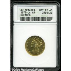 1875-CC $5 --Cleaned--ANACS. AU Details, Net XF40.