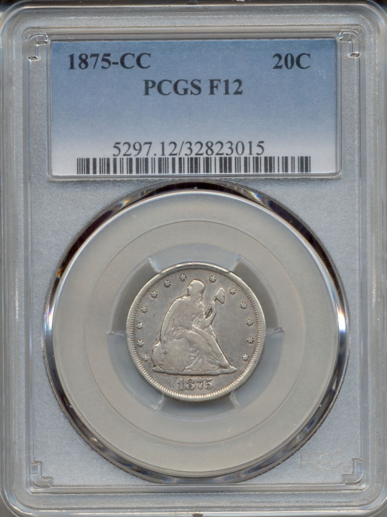 One 1875-CC Seated Liberty 20 Cent Coin PCGS F12.