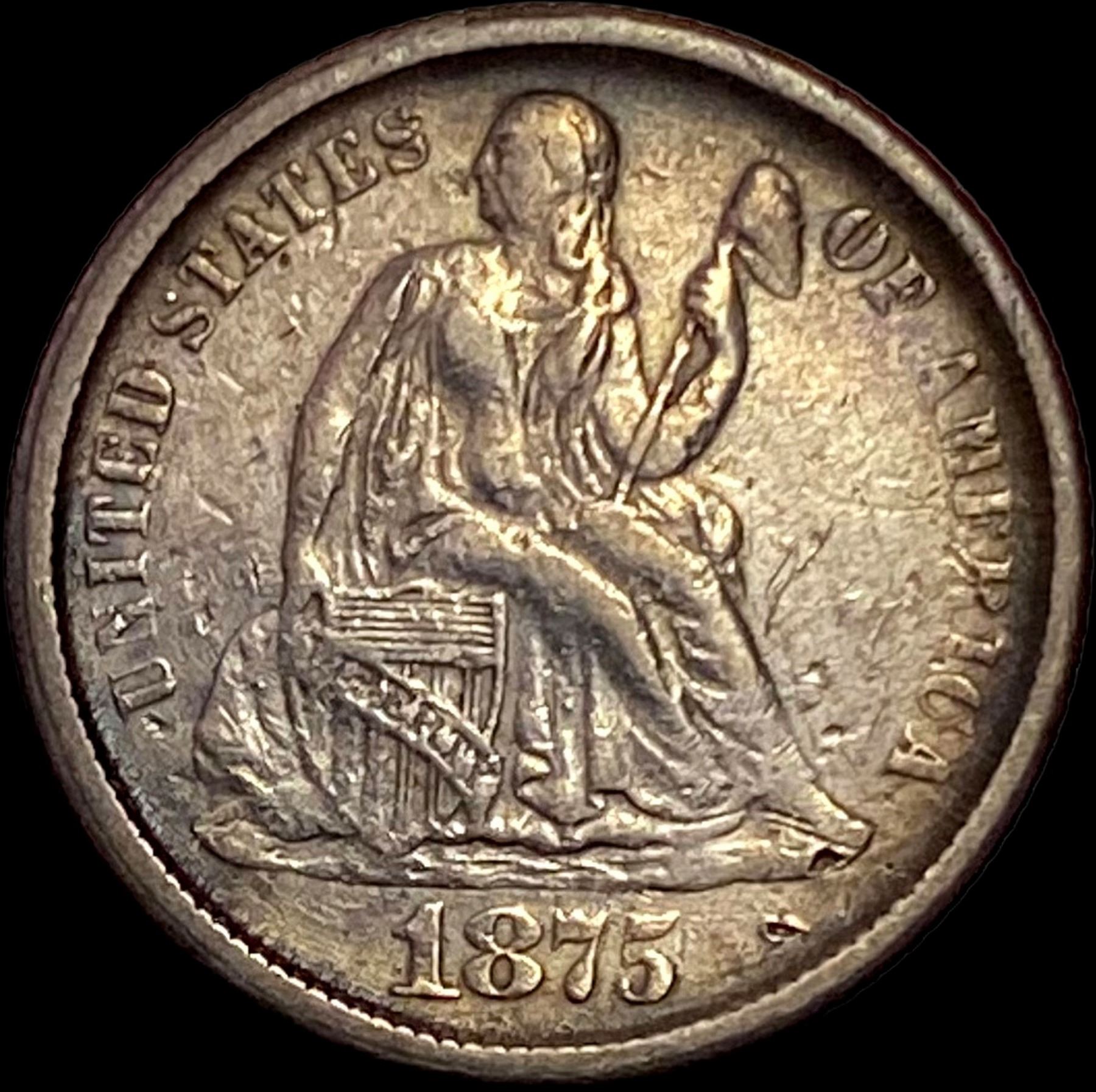 1875-CC Seated Liberty Dime NEARLY UNCIRCULATED