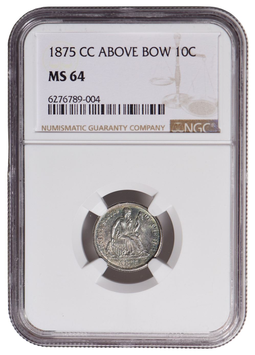 One 1875-CC Seated Liberty Dime NGC MS64.