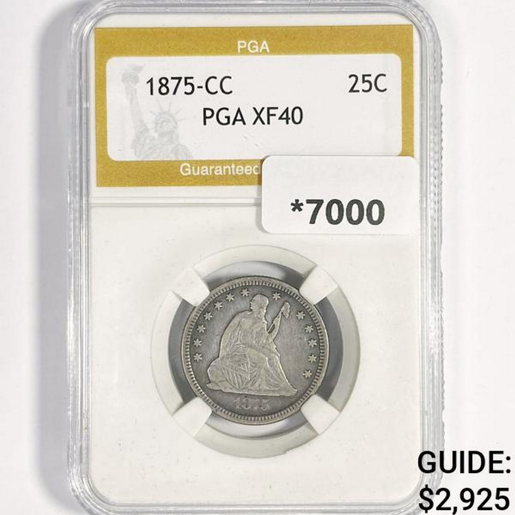 1875-CC Seated Liberty Quarter PGA-XF40